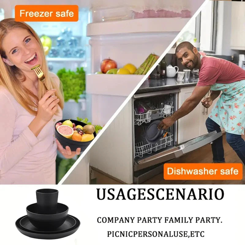 • You get 16 pieces in total: 4 (9.1-inch) plates, 4 (7.8-inch) plates, 4 dinner bowls, and 4 beverage cups. This comprehensive set is ideal for family meals or gatherings. Enjoy a well-organized dining experience with this practical and compact tableware set.