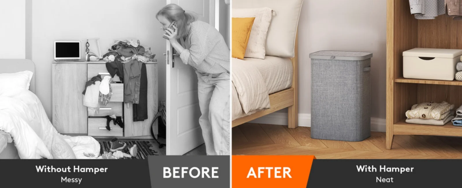 85L Laundry Hamper with Handles Inner Bag Plastic Frame Good Support Large Capacity Dirty Clothes Basket