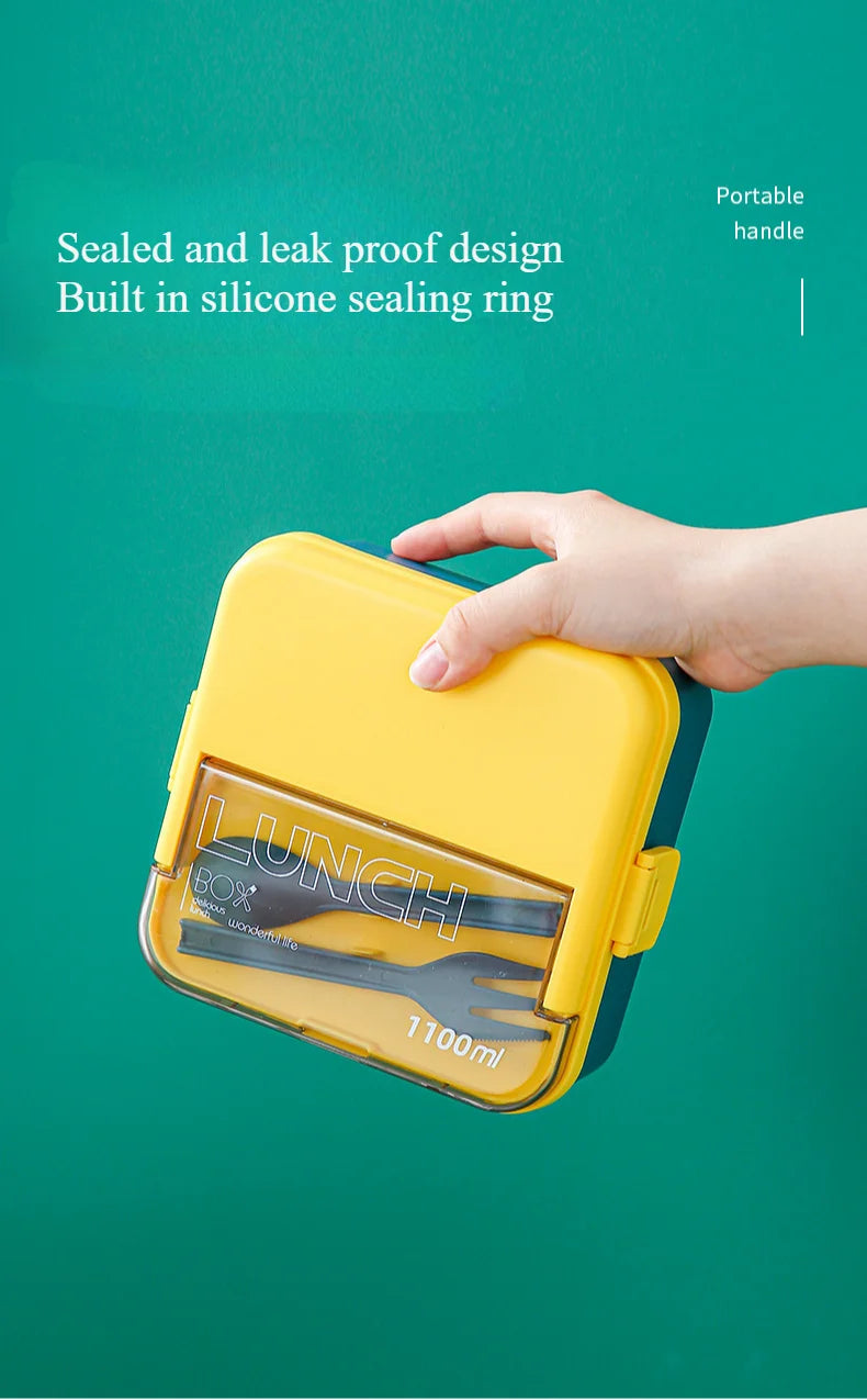 • Double Layer Portable Lunch Box designed for kids. It includes cutlery, making it a complete dinnerware set. This lunch box is microwave sealed, ensuring your child's food stays fresh. Ideal for bento boxes, it's a versatile food storage container.