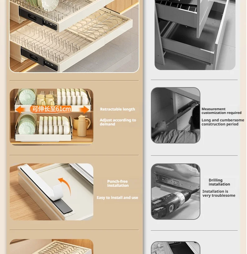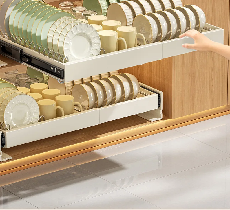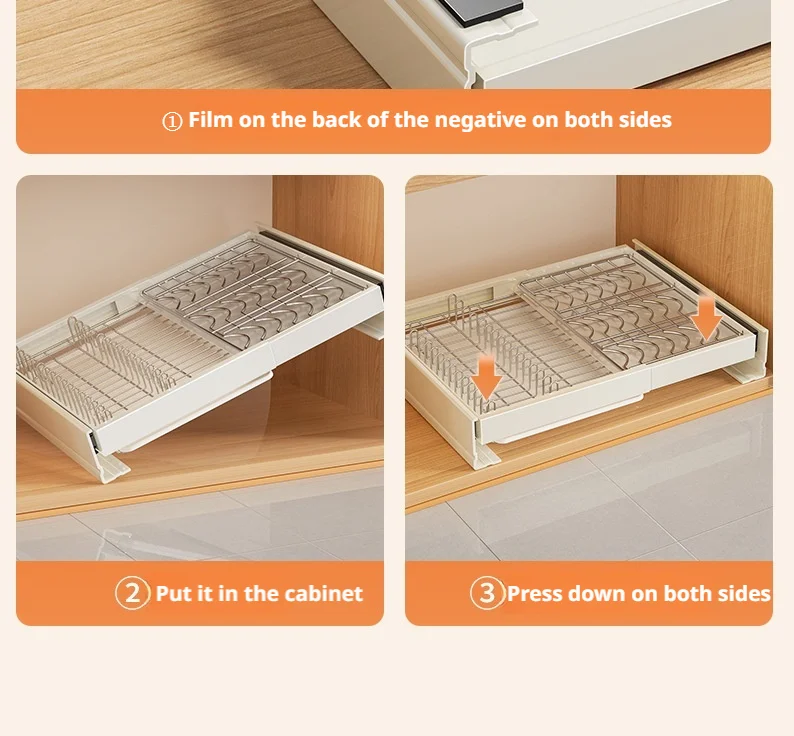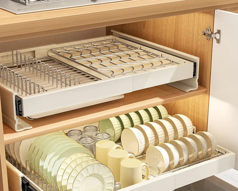 Expandable Pull Out Cabinet Organizer Dishes Draining Rack Basket Kitchen Base Cabinets Slide Out Pantry Drawers Storage Box