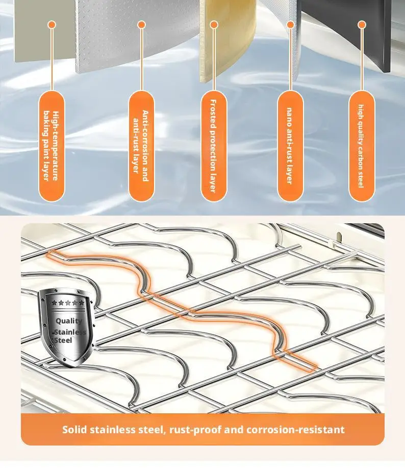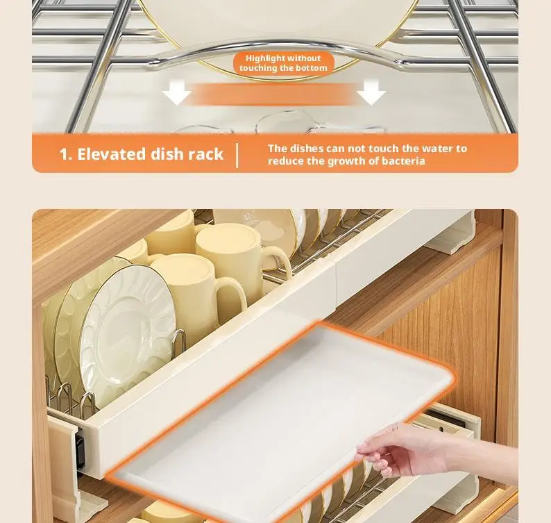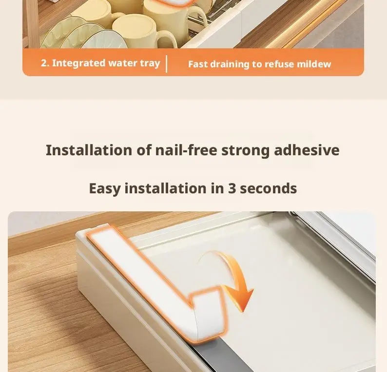 3,Heavy-Duty Hanging Wall Cabinet:Hollow-out Design: Bowl/dish rack with hollow-out design in the middle, mesh strips for quick draining, with catch tray at the bottom for easy draining without wetting the cabinets.