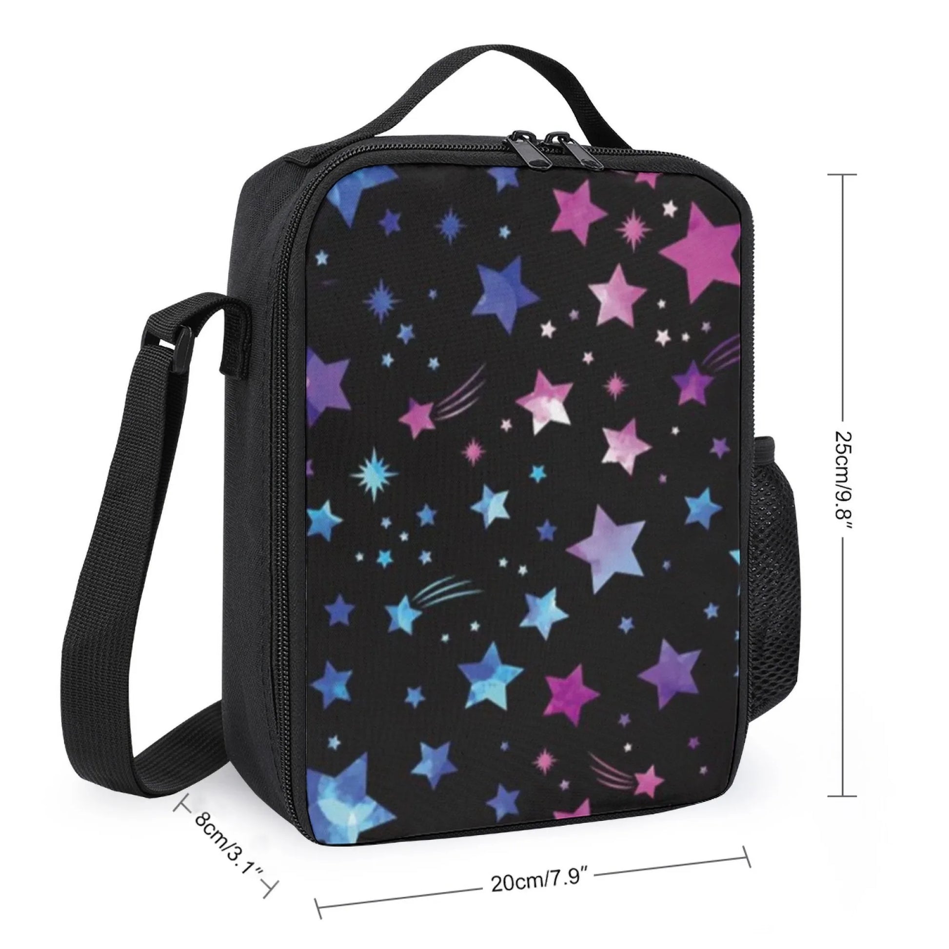 Insulated Lunch Bag, Oxford Cloth Material, Vibrant Colorful Stars & Shooting Stars Pattern, Great for School/Picnic/Outdoor
