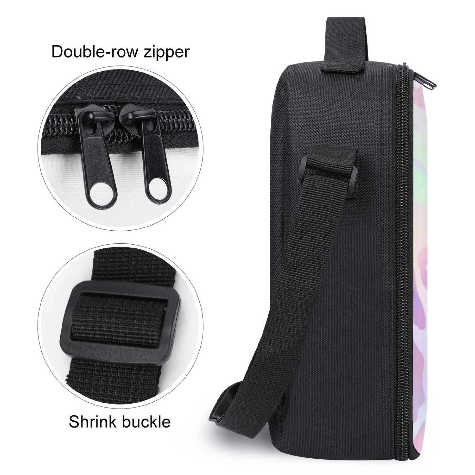 This lunch bag is crafted from Oxford cloth, ensuring durability and style. It features a pastel rainbow leopard print pattern, adding a unique touch to your daily essentials. The design is perfect for those who appreciate both functionality and fashion.