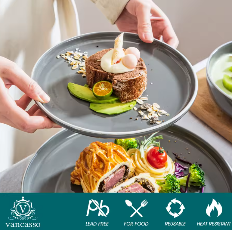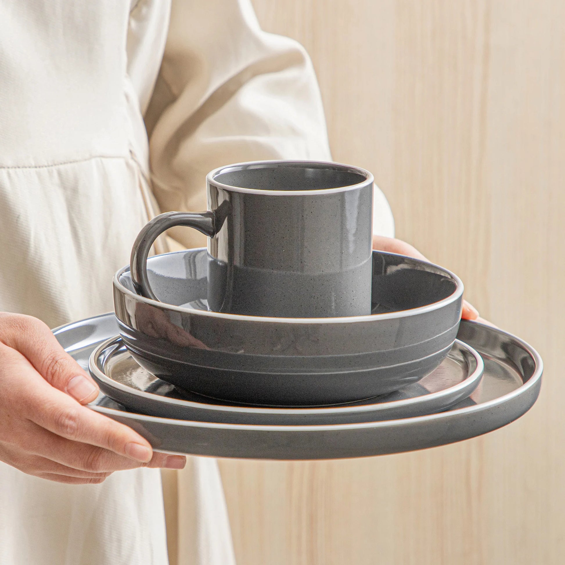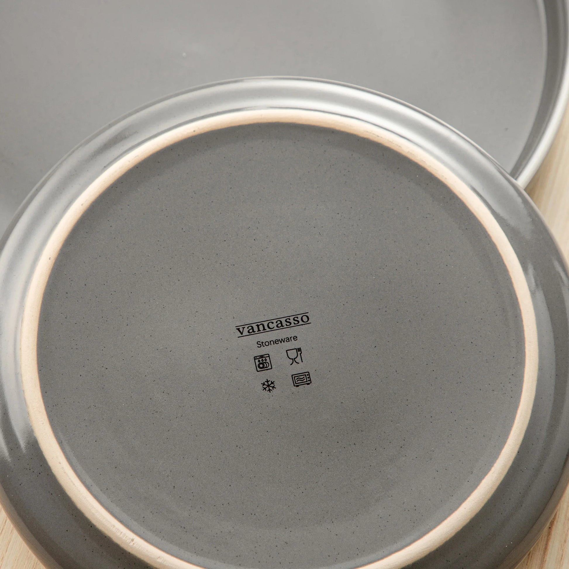 Vancasso 4-16 Piece Grey Stoneware Set Sesame Glaze Ceramic Dinnerware Set with Up To 4PCS Dinner/Dessert Plate/Soup Bowl/Mug