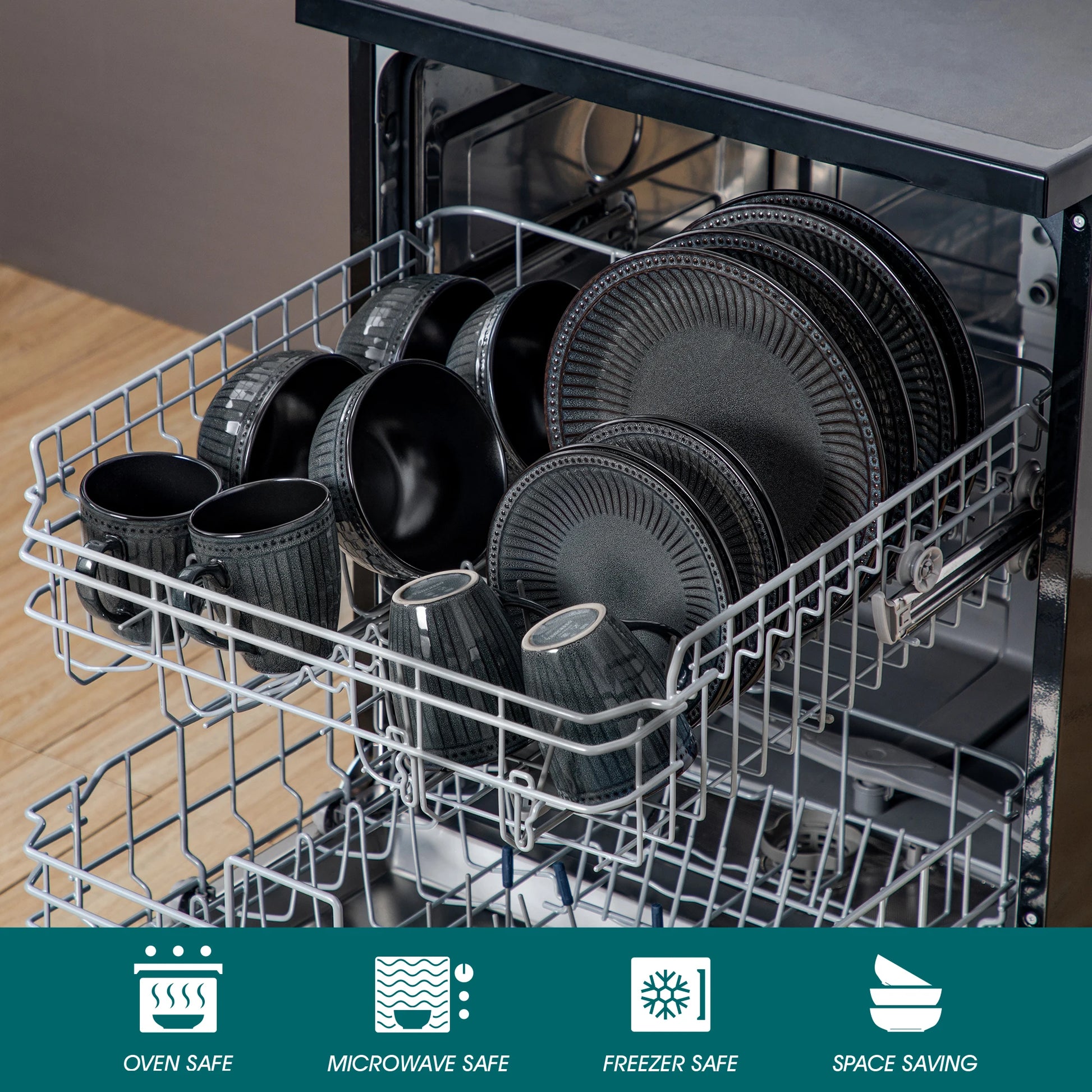 vancasso 4-16 Piece Relief Ceramic Plates Set Black Elegent Tableware set with up to 4 PCS Dinner Plate/Dessert/Cereal Bowl/Mug