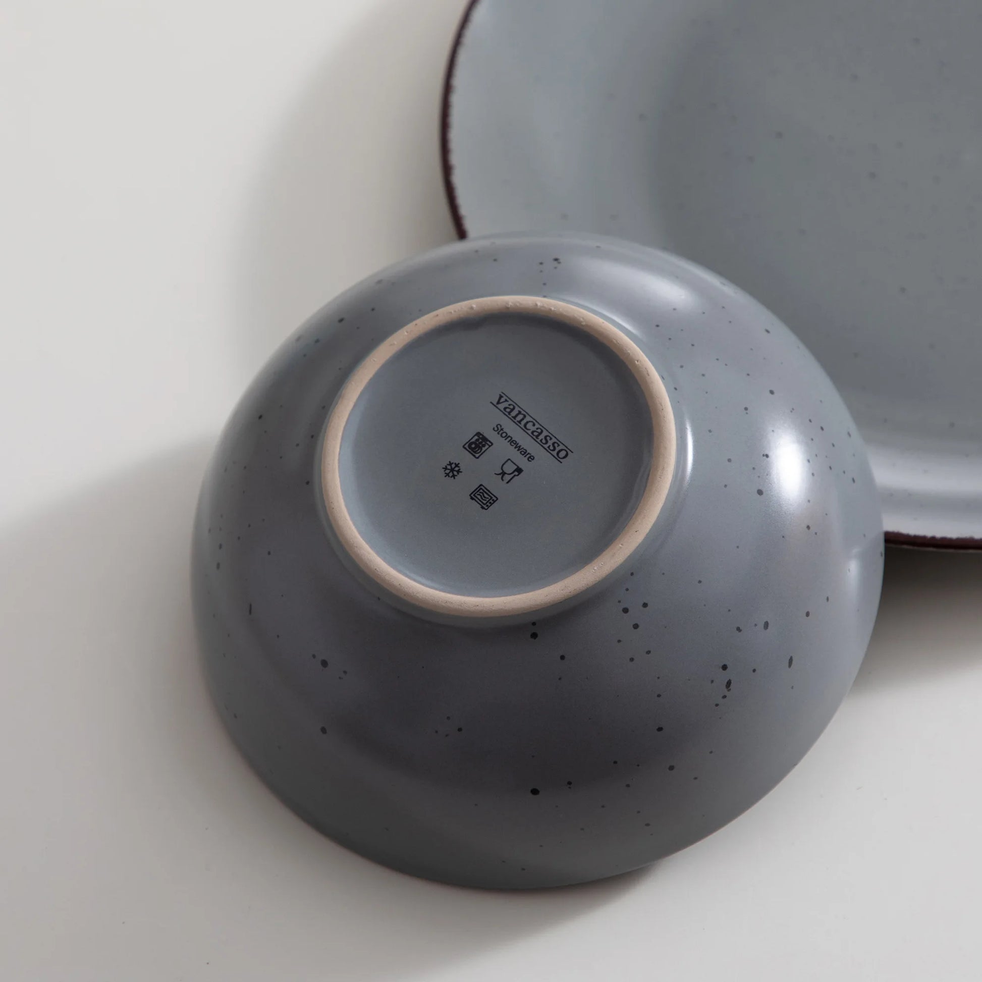 VANCASSO MODA Series 4-16 Piece Pottery Dinner Set Grey Stoneware Tableware Set with Dinner Plate,Dessert Plate,Bowls,Cups